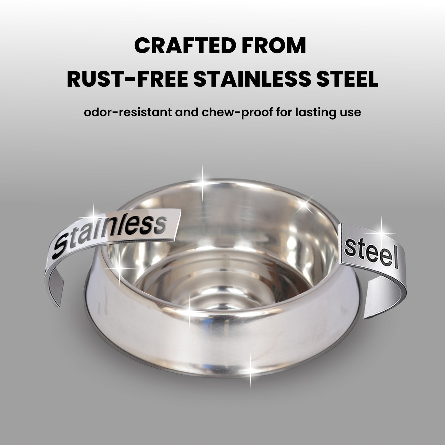 Iconic Pet Ant Free Stainless Steel Pet Bowl with Anti-Skid rubber base is made of high quality stainless steel for durability and is ideal for dogs and cats.